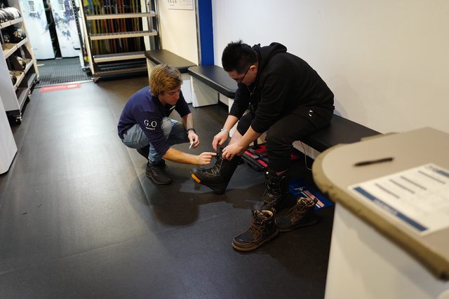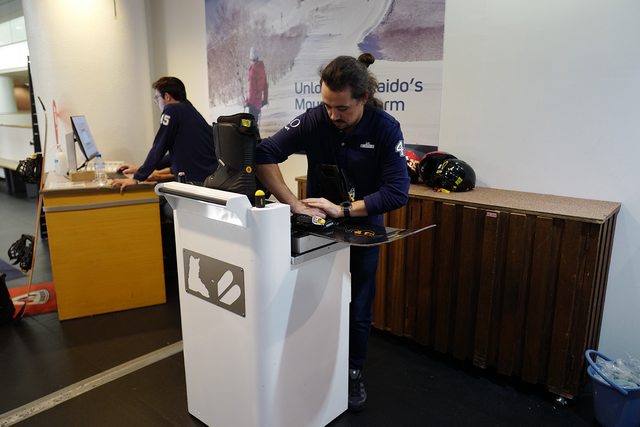 櫃檯詢問我們snowboard是regular(左腳在前)還是goofy(右腳在前),