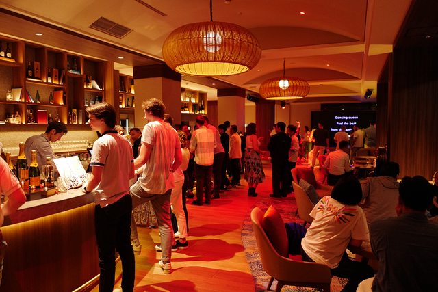 泡完湯再去酒吧,這時已滿滿客人。