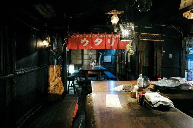 獨特外觀加上窄小店面,拉開門簾前難以想像內部的環境氛圍。昭和29年創業的炉ばたウ