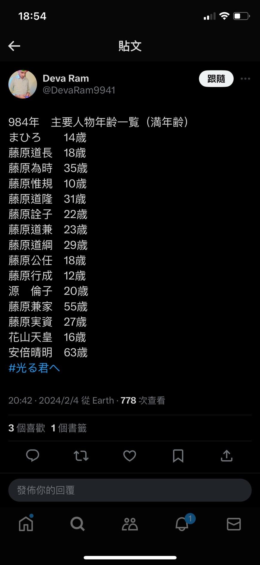 推 episold: 藤原為時才35,道長四兄妹是29 23 22 18,古人進度超快 02/16 15:23
