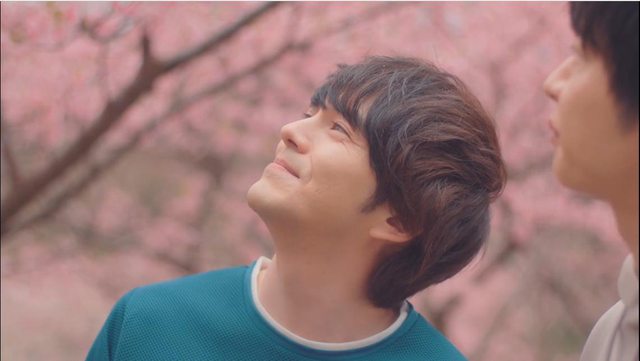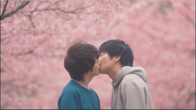 春田和牧最後再給觀眾一個深深的吻,搭配櫻花,美到讓人要哭出來的。