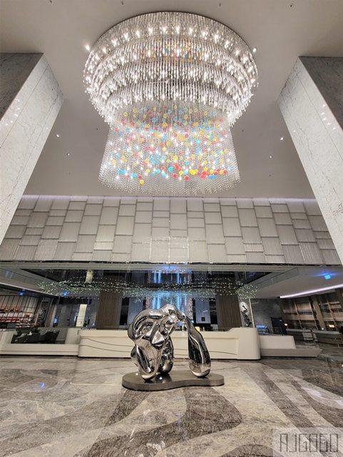 極為寬敞的挑高大廳,以巨型水晶燈垂綴裝飾其中,大廳每天18:00~19:00與周末的