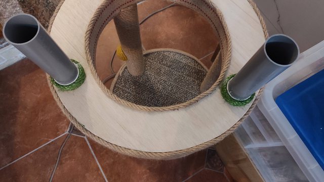 底座加柱子,柱子使用廢材紙捲芯加水管