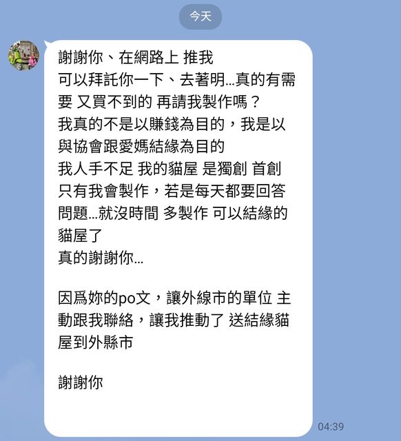 所以......如果你有需要堅固的貓屋,趕緊聯絡黃大姊啦