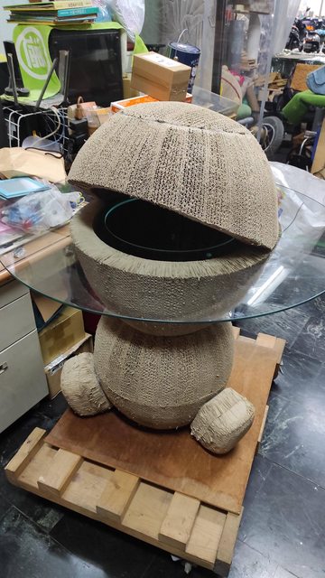所以她跟工廠拿很多本來要處理掉的紙棧板