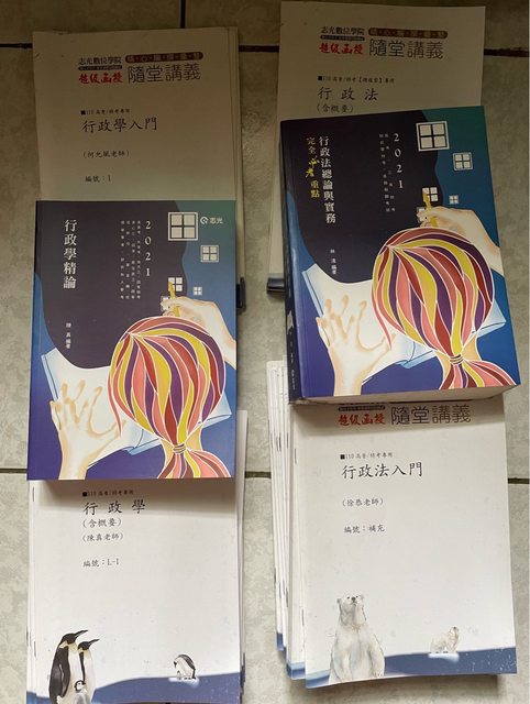 物品名稱:行政學、行政法、公共管理、公共政策、國文,考試用書和相關的一堆講義跟