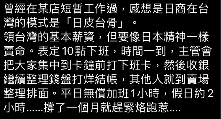 → dqdq : 台灣血汗本來就承襲日本的,日企薪水真的不要想太多 07/16 23:00