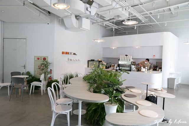 猻物咖啡每間店都有屬於自己特色的風格,馬卡道店配合內惟藝術中心,採用純白色系的