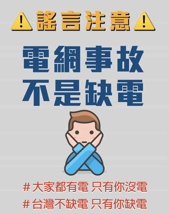 現在停電是阿共的陰謀!」、「剛剛瞬間跳電一下嚇到我,原來我不孤單」、「是怎回事