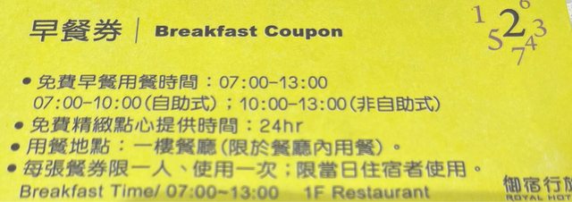 標題[贈送] 御宿雄中館8/2的早餐券