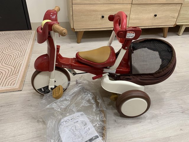 物品名稱:日本iimo兒童折疊三輪車-經典紅(含遮罩、護圍)