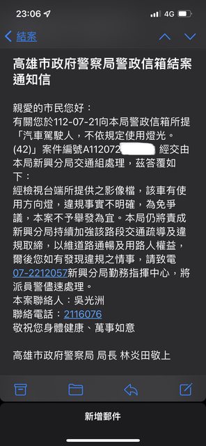 最後掛斷時警員還提醒我騎車不要騎那麼快