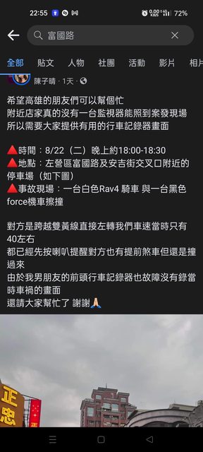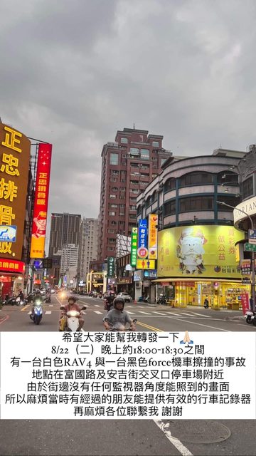 標題[徵求] 行車記錄 8/22 18:00 富國路