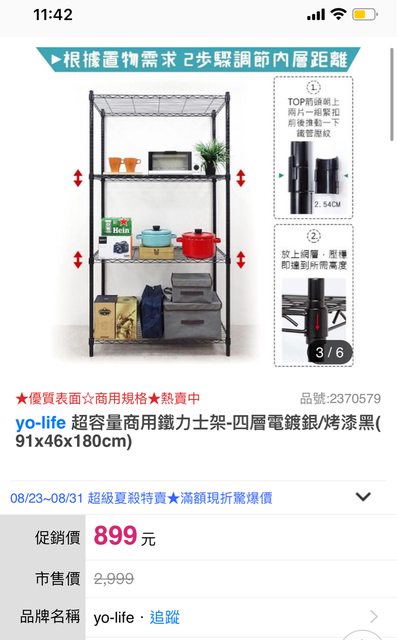 yo-life 超容量商用鐵力士架-四層電鍍銀/烤漆黑(91x46x180cm)