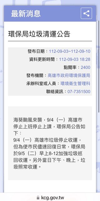 推 KouSaka : 總算讓清潔隊不在風雨中工作了 09/03 19:45
