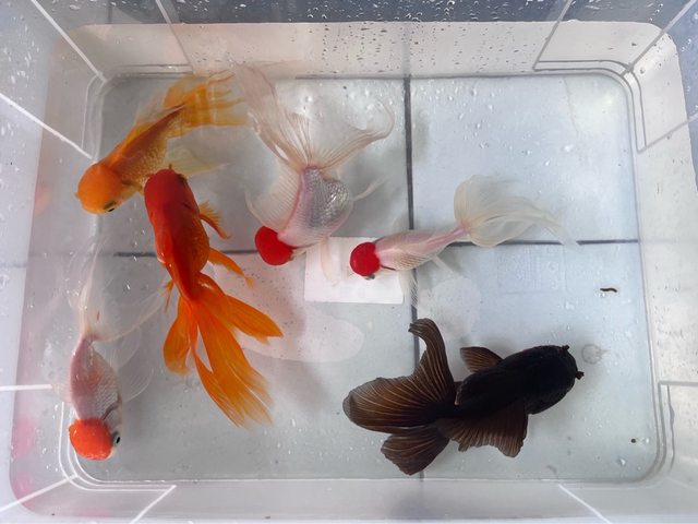 物品名稱:獅頭金魚六尾(含尾鰭約12公分)+黃金琵琶鼠一尾