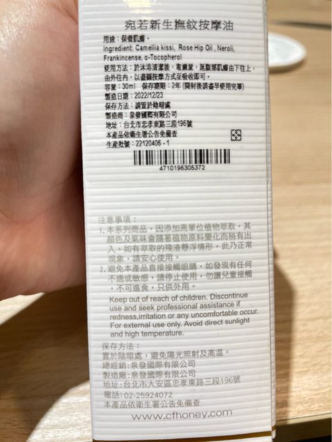 6.CHYUAN FA 撫紋按摩油 30ml(9成新,僅開封來聞聞味道,製造日期20221223,可保存2年)