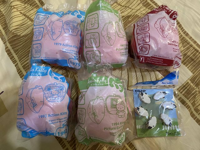 4. 麥當勞Hello Kitty 蘋果玩具+動物造型書夾+麥當勞kitty紅髮晶,如圖, 已拆封,沒有擺出來過