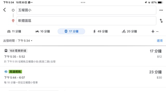 → alkene : 班」時刻「均速」大於輕軌,我騎機車通勤都不會比 10/30 23:28