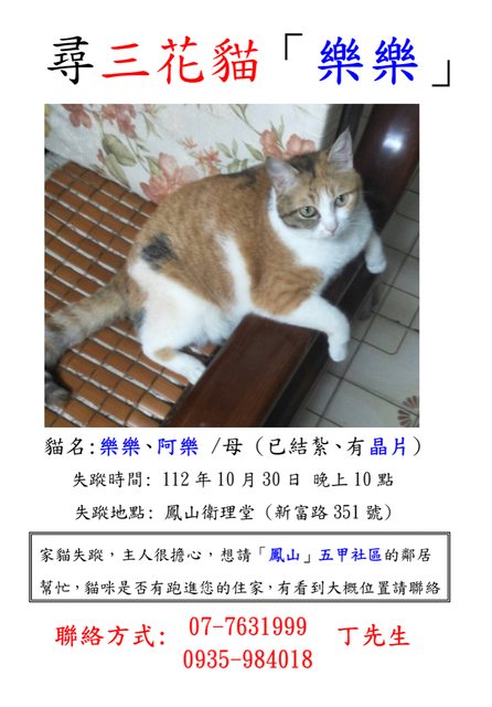 標題[協尋]三花貓—樂樂、阿樂 (高雄鳳山區)