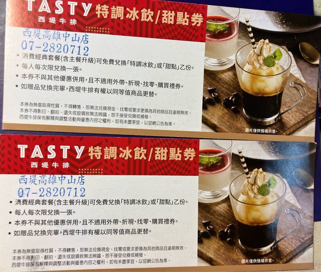 標題[贈送] 西堤特調冰飲/甜品券兩張