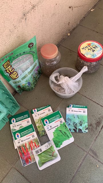 物品名稱:固定用竹棍、肥料、蚯蚓肥、種植土、種籽、盆栽桶(一次索取,無法一次索