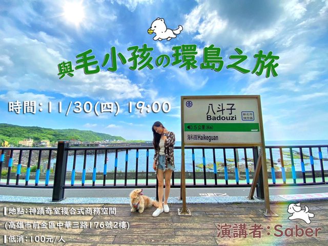 這次邀請到Saber 跟來跟大家分享她帶著毛小孩環島的經驗喔!歡迎喜歡旅行,或是也有