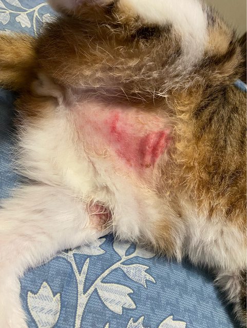 我們家貓的肚子除了沒毛之外還開始有傷口產生