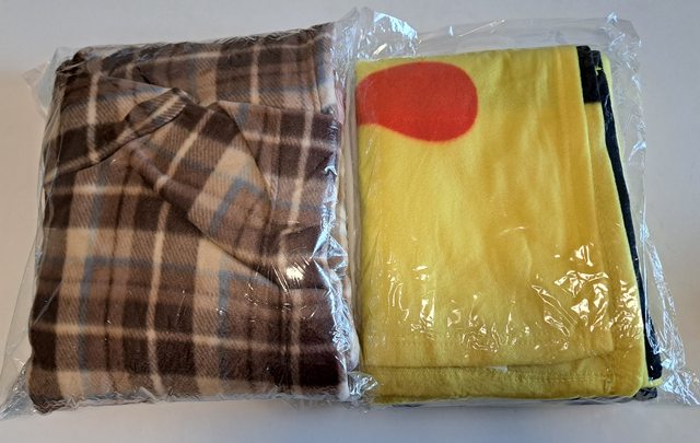 子樣式的可以將雙手穿入,像穿大衣一樣,也可以當作毯子。
