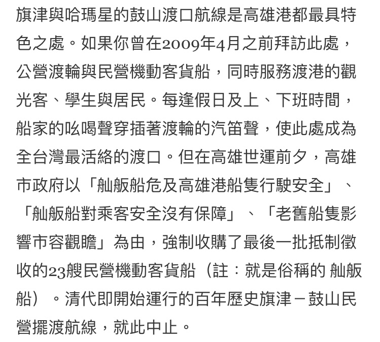 → shane24156 : 旗津渡輪是基於公共利益民生需求嗎? 11/30 23:32