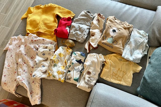 2.寶寶衣物約尺碼70、73,有使用痕跡,11件長袖,1件短袖,皆已清洗過,男寶女寶都
