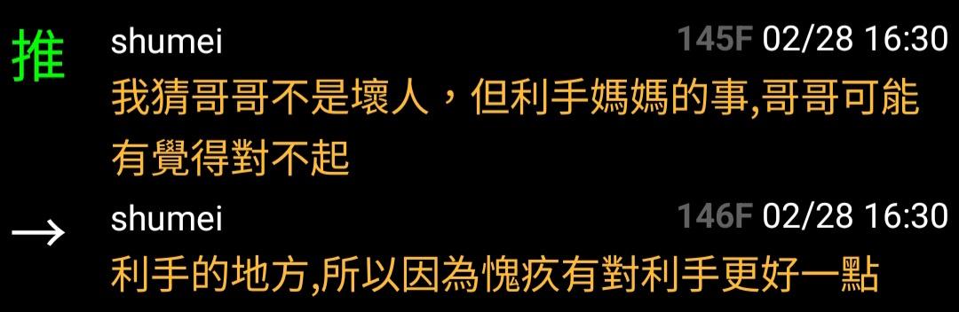 → sofa89: 爺爺那邊是加分項。而利手媽只是一個平凡家庭女孩,在他 03/23 17:00