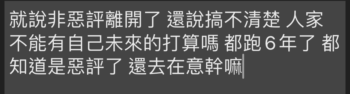 推 ariesjen: 說「全不是因惡評離開」,不代表沒惡評 101.12.24.68 11/13 12:50