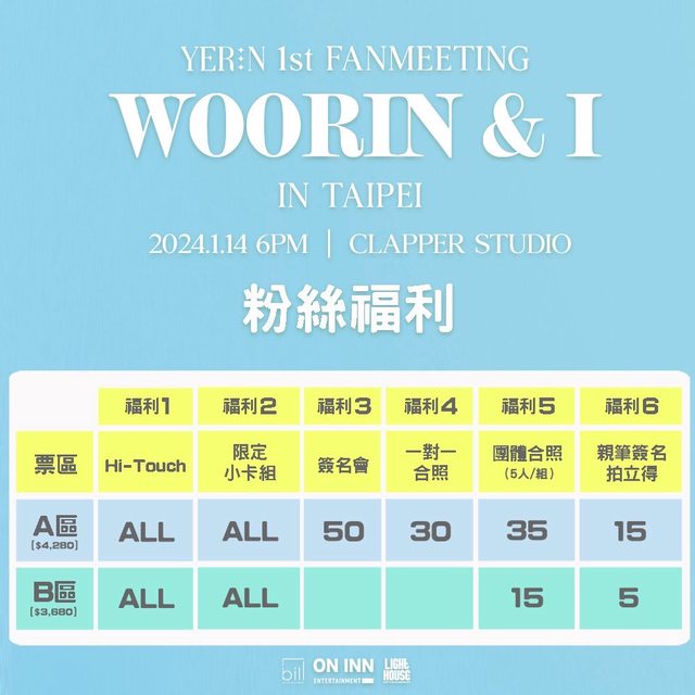 【YERIN 1st FANMEETING 〈WOORIN & I 〉 IN TAIPEI】#售票資訊