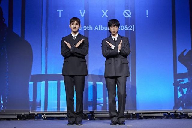 韓國人氣男團東方神起為第九張正規專輯《20&2》舉行記者會照。
