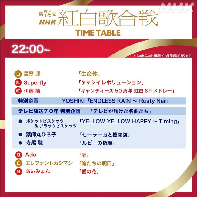 → amethysta: 紅白表演部分不跨年,而且越後面越大111.249.216.105 12/31 18:59