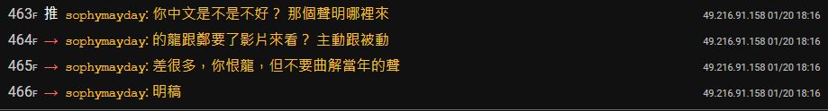 → sophymayday: 到的大部分推文,都並沒有想要幫龍洗 49.216.90.100 01/22 12:30