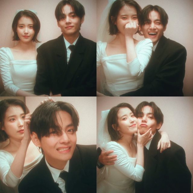 每個人的喜好都不一樣的IU和V的婚紗四格照one pick