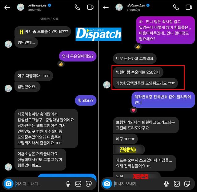 實際上,徐東勛在Dispatch上提供了與雅凜的Kakao Talk對話,「用私訊借錢賭博了」,
