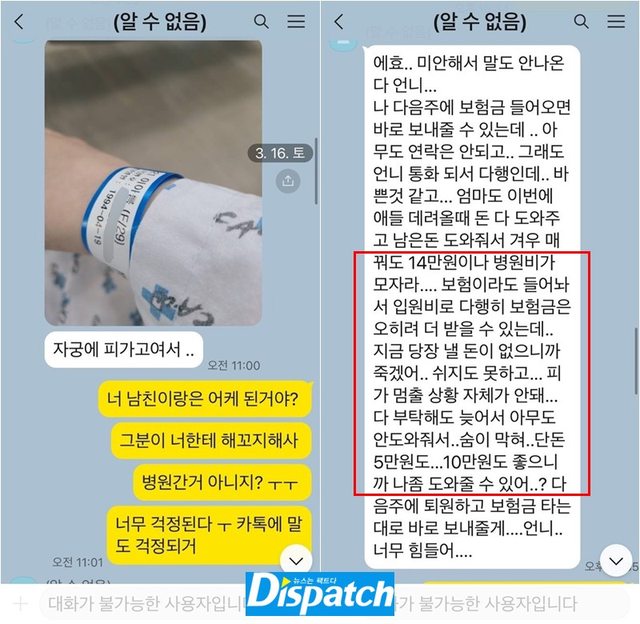 等我清醒了一會兒再聯絡你。因為220萬韓元不夠,所以無法進行(手術)。