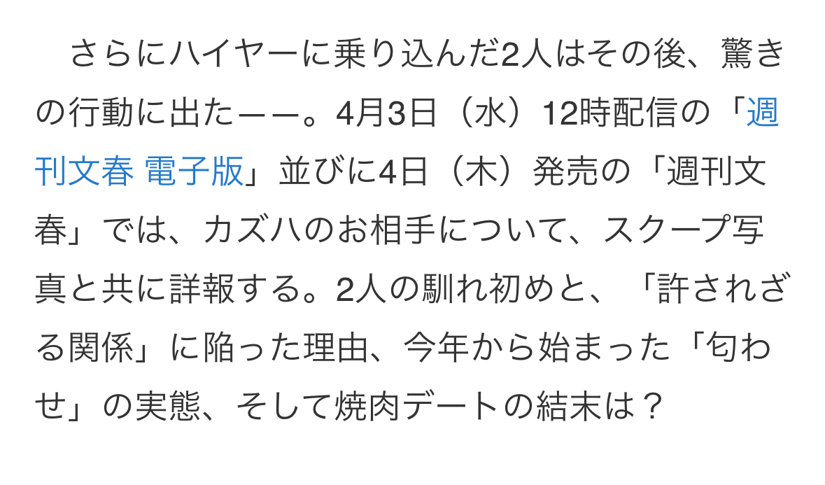推 wow5050: 文春online就預告而已 文章最後有寫想知114.191.180.194 04/03 11:14