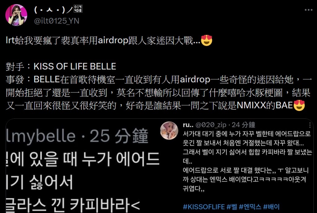 推 littledos: BAE那個迷因圖戰是在Kiss of Life的 42.76.74.95 04/04 14:51