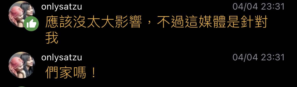 → sphinx1031: 開是尊敬當事人自己意思 新聞提到她們 1.163.28.117 04/05 13:05