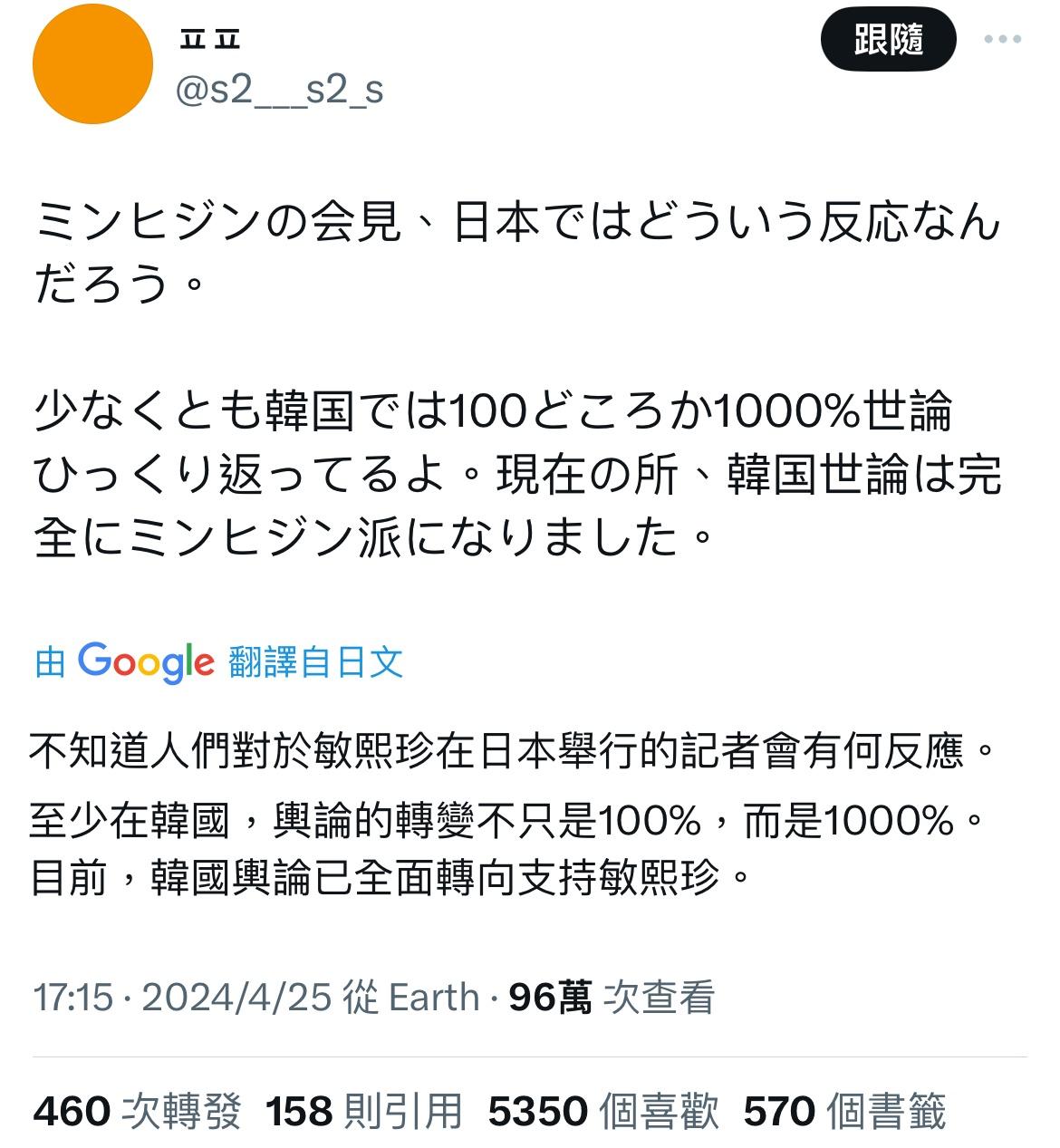 → sbtiagr: HYBE已經很瘋 閔又更瘋 都沒好感+1223.136.115.127 04/25 22:35