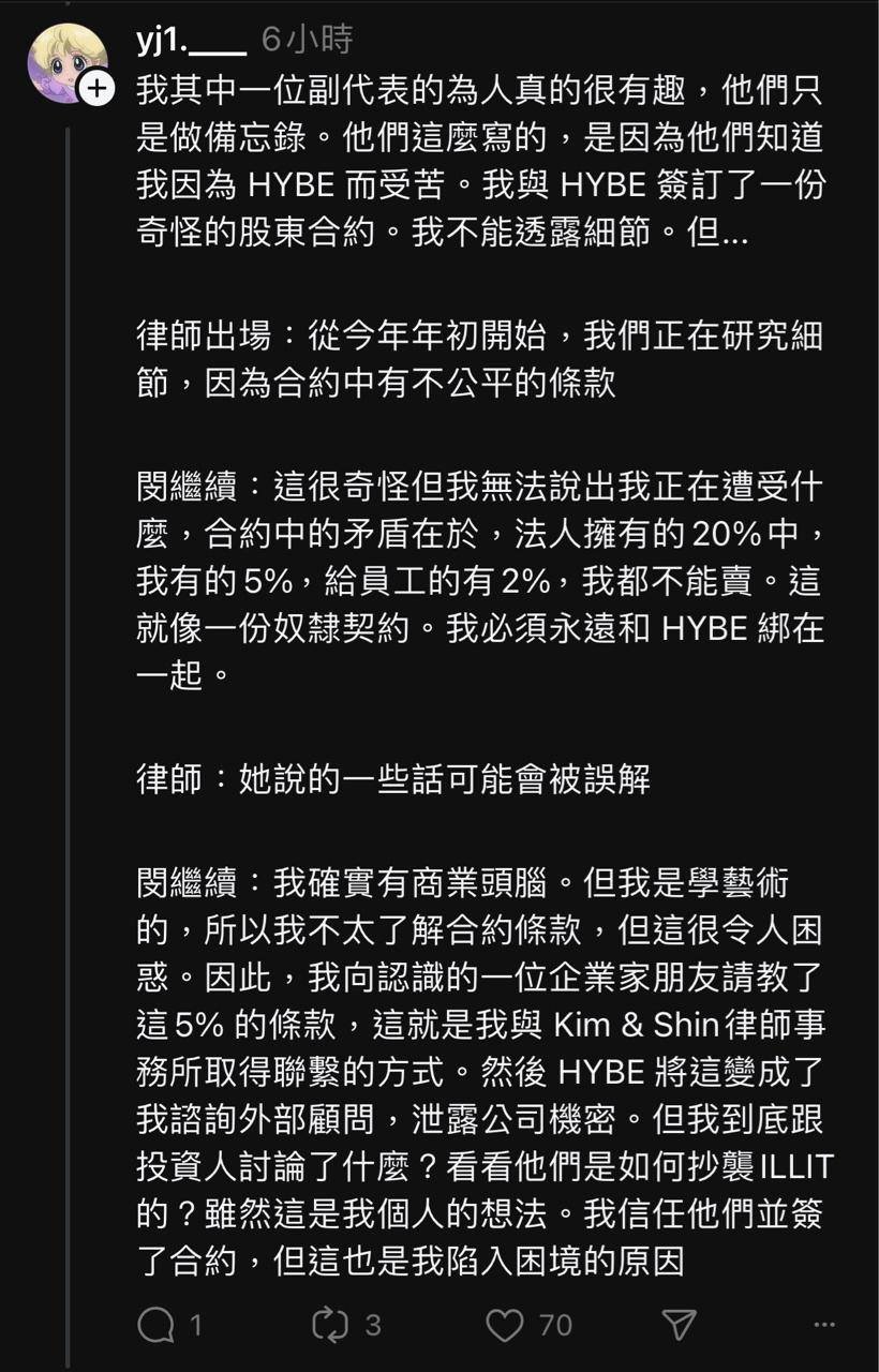 → joker0903: 主創業 HYBE這麽大的公司要對股東負責111.255.213.2 04/25 22:56
