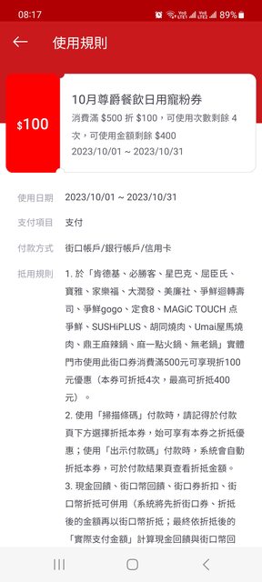 其中家樂褔500-100,有4次現折 今日去家樂褔儲錢包,用街利存帳付拿23% http://i.imgur.com/2y8dDEg.jpg