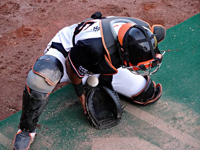 這時候捕手就要全副武裝,也包含護檔要穿,教練還笑說怎麼還在穿尿布XDD