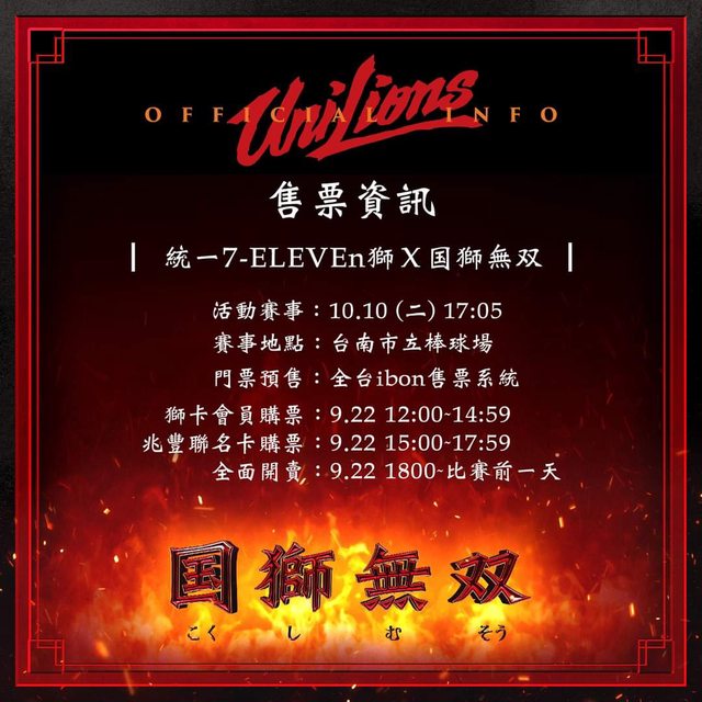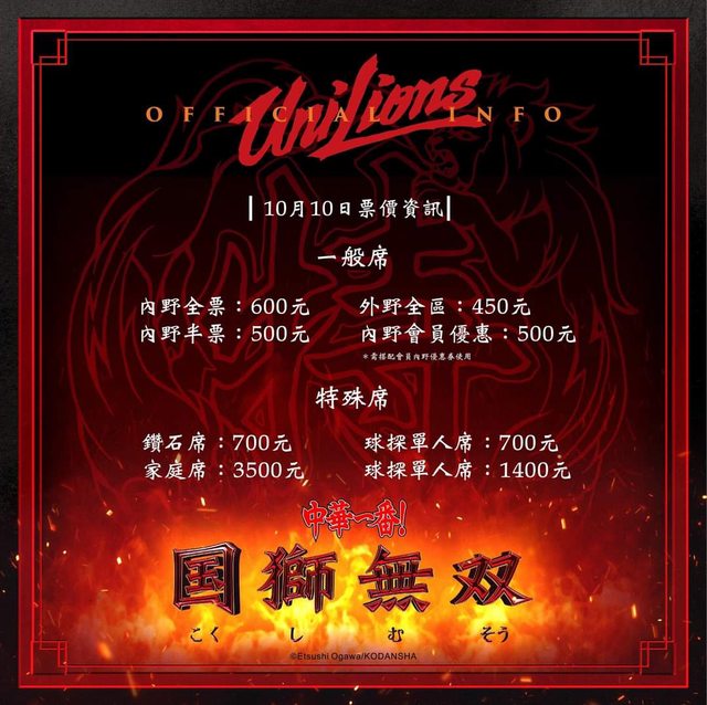2、原9.3賽事購票者,因該場補賽已非国獅無双主題日賽事,該場補賽票價將調整至假日賽