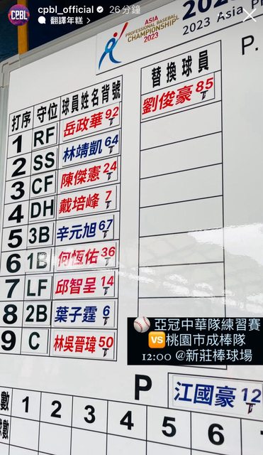 推 yuri0626: 因為現在人不夠吧 先發排完只有名單外的劉俊豪替補而已 11/12 15:02