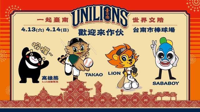 4.9(二)~4.14(日) 統一獅X臺南400主題日,一起台南、世界交陪熱鬧登場,單週五場賽